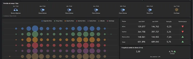 É de extrema importância que uma organização tenha capacidade de reunir e utilizar de maneira eficiente os dados coletados pelos seus sistemas de informação, possibilitando aos seus colaboradores fazer bom uso dessas informações no dia a dia. Nesse cenário, a ferramenta do dashboard aparece como espaço de reunião de dados e análises relevantes que permitem otimizar o desenvolvimento de várias rotinas e projetos dentro de uma empresa.